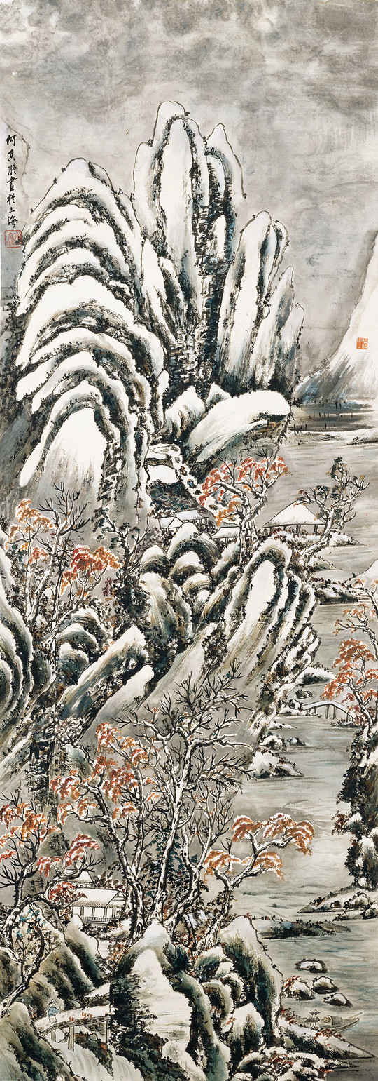 何香凝 红枫雪景 108*38 cm 设色纸本 1930年代 何香凝美术馆藏