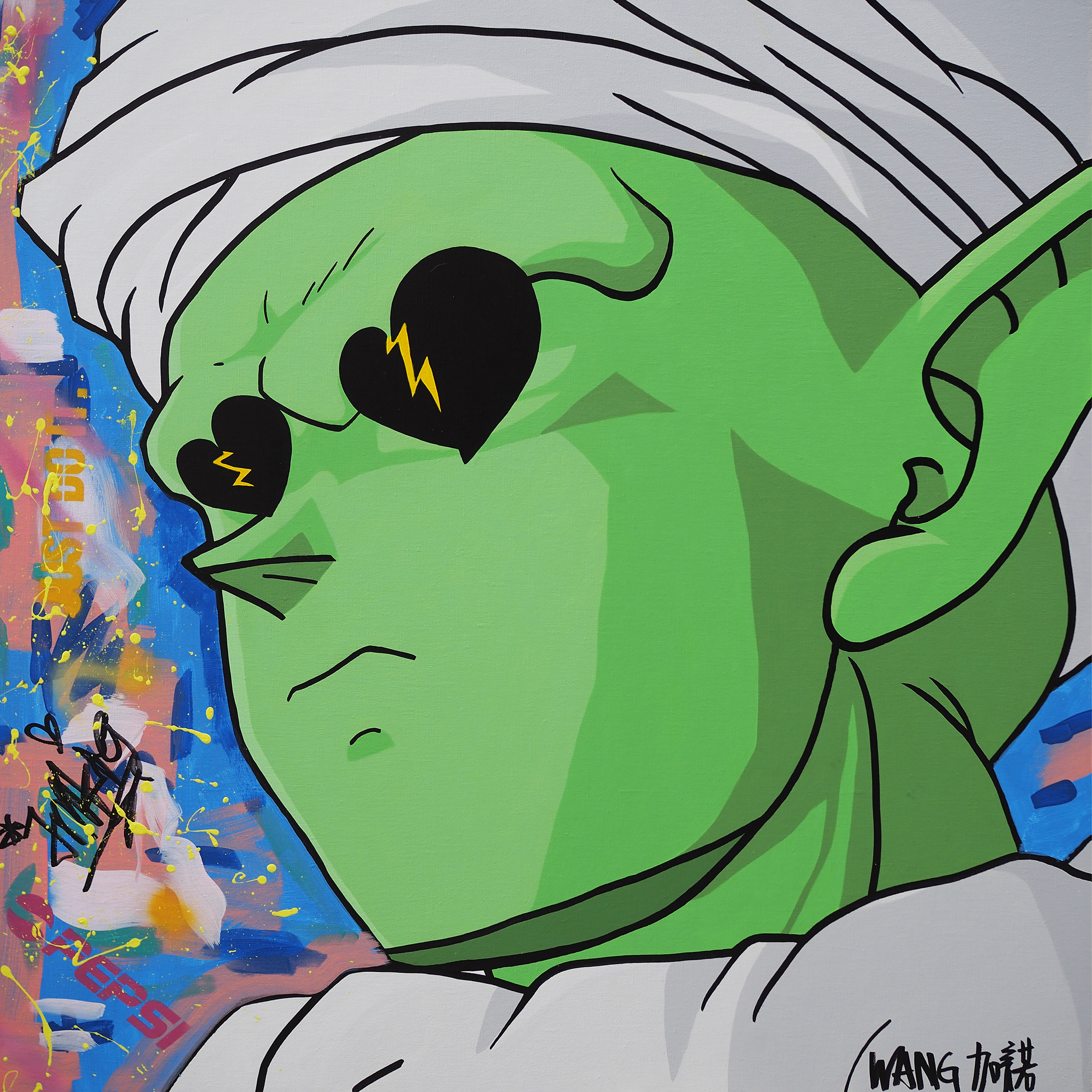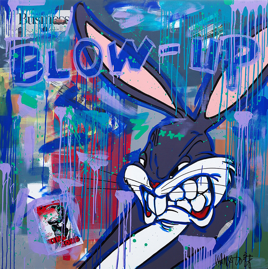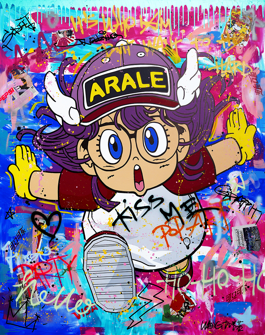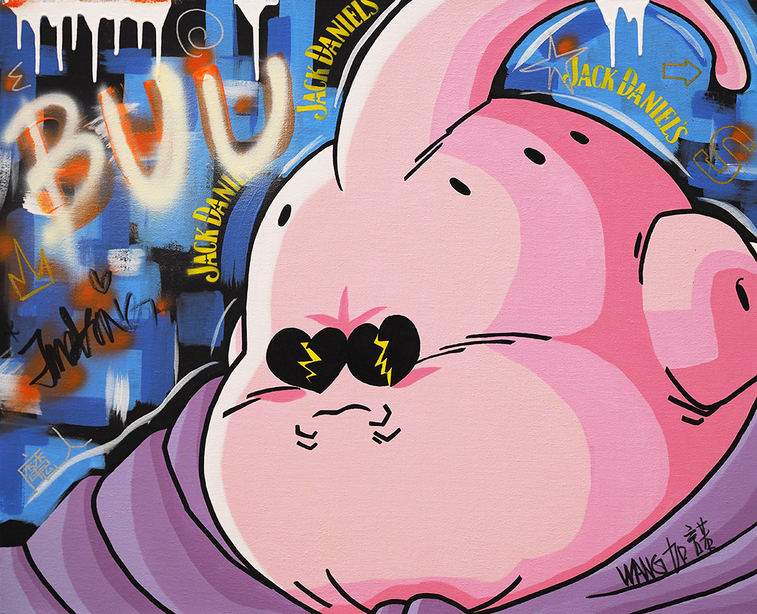 作品描述 王加诺的作品有很高的辨识度。他用涂鸦、拼 贴的手法,将卡通图案的并置在画布上。作品常常挪用我们耳熟能详的漫画形象,像皮卡丘、猫和老鼠、海绵宝宝、超级玛丽等,承载了现在年轻人的集体记忆。同时当下消费时代的拜金元素也被艺术家直接搬上画面,像商标、品牌和货币符号等,艺术家甚至用货真价实的美元粘贴其上,带有嘻哈文化、说唱文化的叛逆与直接。但是艺术家的制作是很精细的,这也是保证了他作品艺术价值的一方面,王加诺结合了喷漆涂鸦和画笔精妙细绘的方式,对形象的边缘他采取了平涂的手法,将轻松生动的涂鸦色彩限定在严谨细致的轮廓之中,也是艺术家功力的体现。 展开>